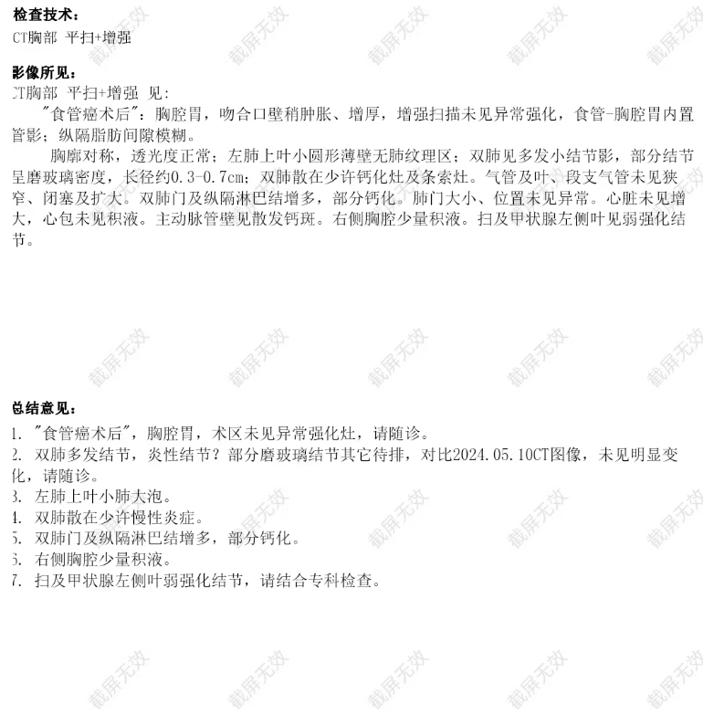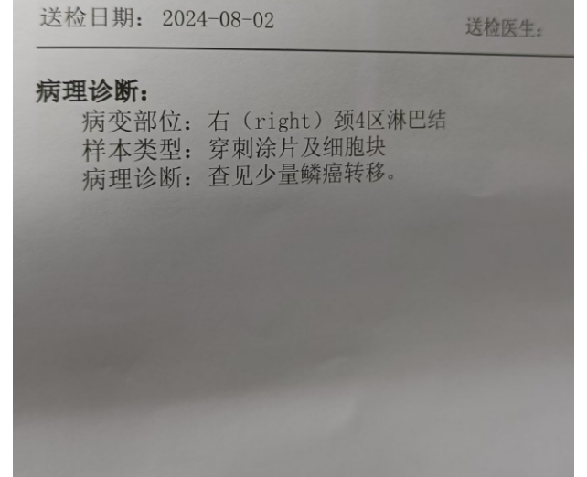 65岁食管癌术后三个月颈部淋巴结增大咨询质子刀治疗2024-08-20食管癌质子刀淋巴结增大食管癌的治疗