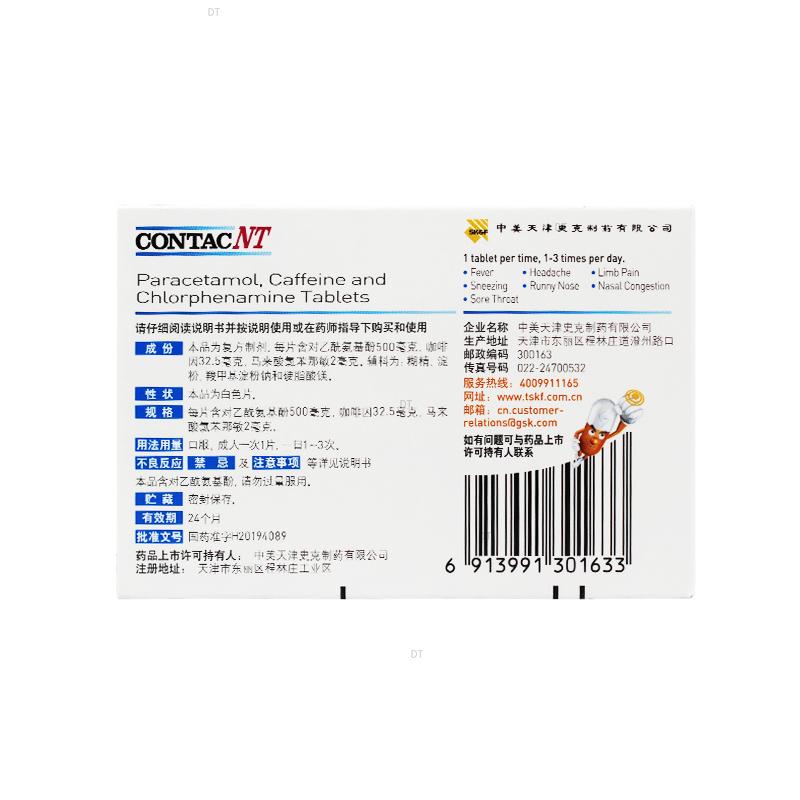 [新康泰克] 氨酚咖那敏片 500mg:32.5mg:2mg*10片*2板