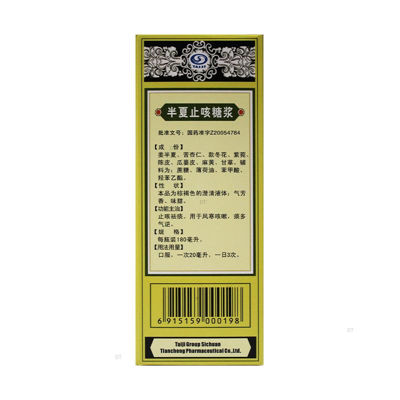 成份:本品主要成分为姜半夏、苦杏仁、款冬花、紫菀、陈皮、瓜蒌皮、麻黄、甘草。辅料为苯甲酸钠。
