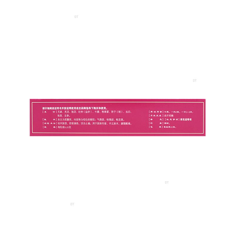 功能主治:祛风除湿,舒筋通络,活血止痛。用于肢体拘挛,手足麻木,腰腿酸痛。