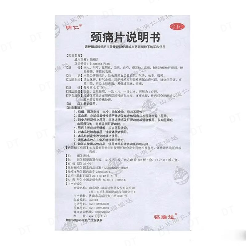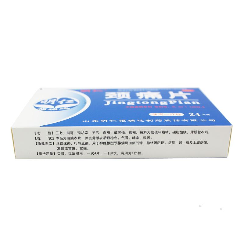成份:三七、川芎、延胡索、羌活、白芍、威灵仙、葛根;辅料为倍他环糊精、硬脂酸镁、微晶纤维素、薄膜包衣剂。