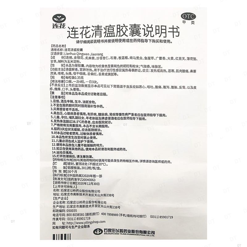 通用名称:连花清瘟胶囊