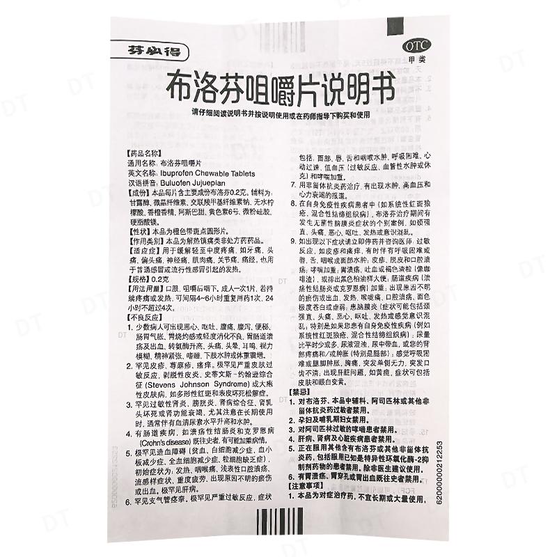 通用名称:布洛芬咀嚼片