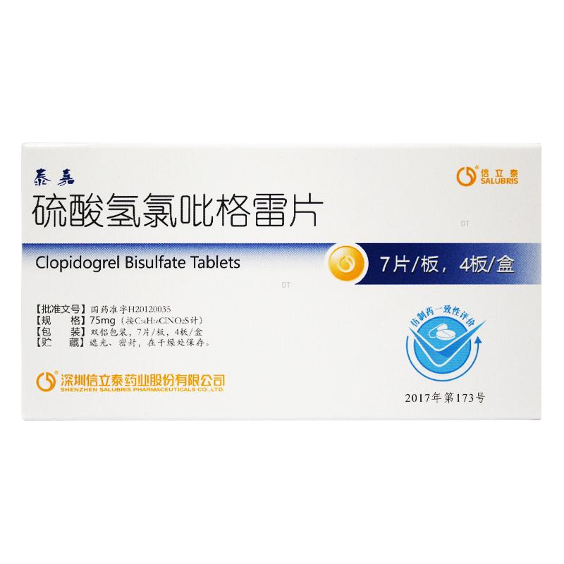 [信立泰 泰嘉] 硫酸氢氯吡格雷片 75mg*28片/盒