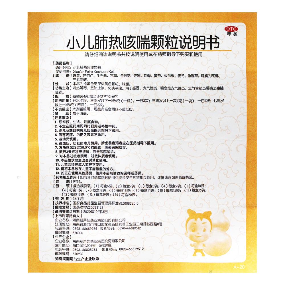 通用名称:小儿肺热咳喘颗粒
